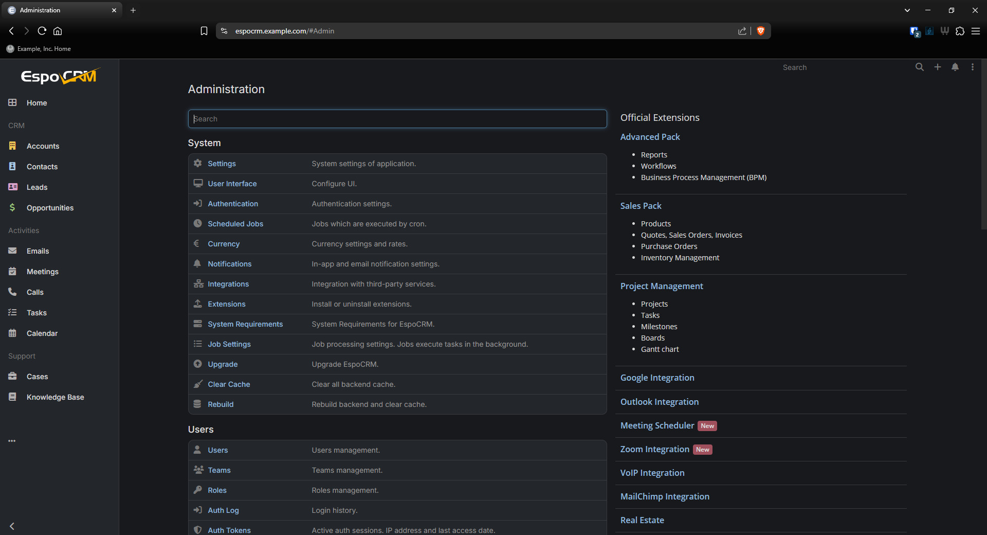 "EspoCRM is a free, open-source CRM platform designed to help organizations build and maintain strong customer relationships. It provides a wide range of tools to store, organize, and manage leads, contacts, sales opportunities, marketing campaigns, support cases, and more - all business information in a simple and intuitive interface."