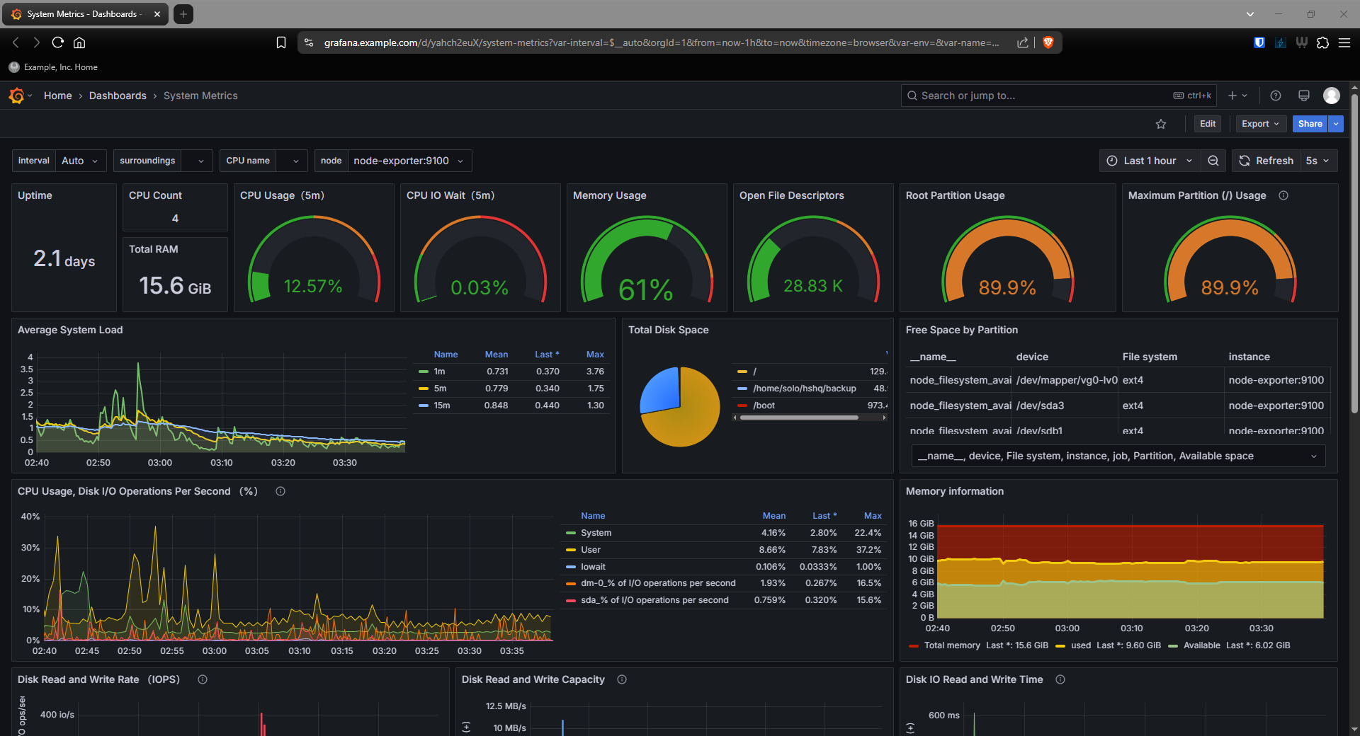 "The open-source platform for monitoring and observability. Grafana allows you to query, visualize, alert on and understand your metrics no matter where they are stored. Create, explore, and share dashboards with your team and foster a data-driven culture."
