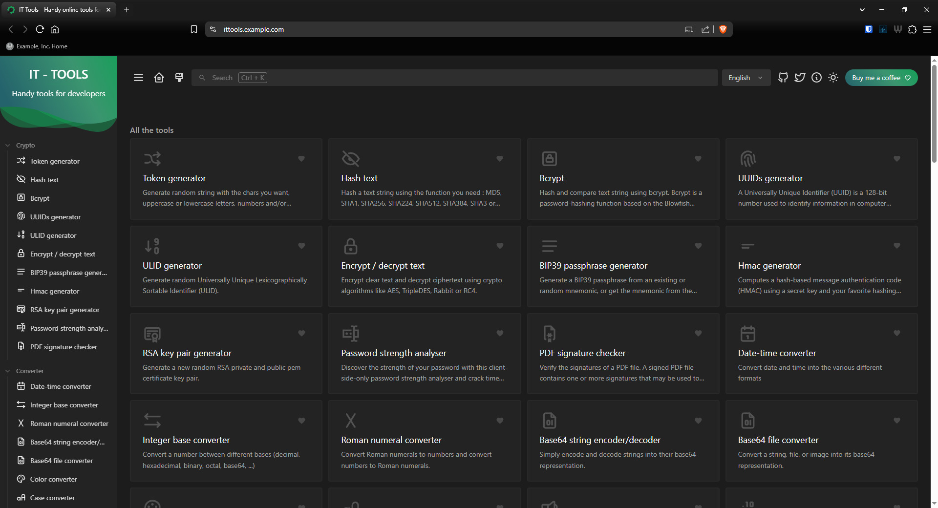 Website: https://it-tools.tech/ Source Code: https://github.com/CorentinTh/it-tools Donate: https://github.com/sponsors/CorentinTh