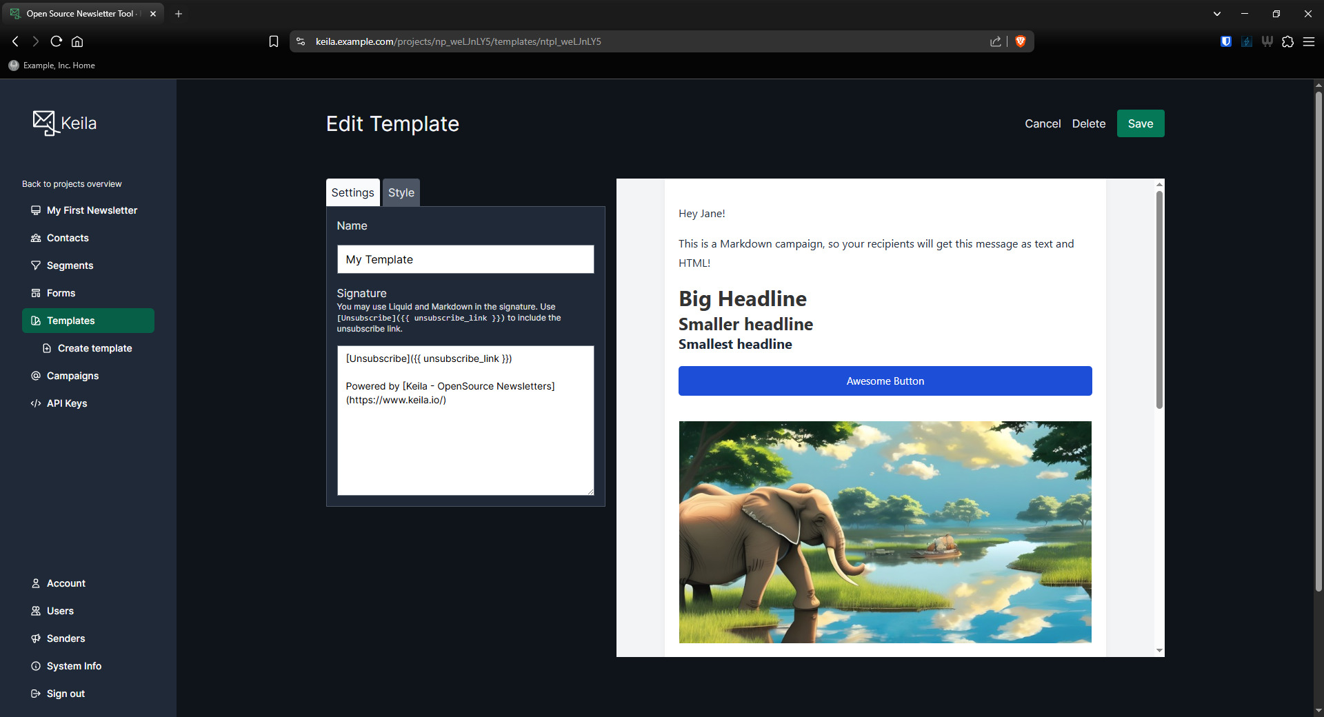 "Keila is an Open Source alternative to newsletter tools like Mailchimp or Sendinblue. With Keila you can easily send out newsletter campaigns and create sign-up forms. For smaller newsletters, you can use your own email inbox to send out campaigns. For larger newsletter projects, AWS SES, Sendgrid, Mailgun, and Postmark are supported in addition to SMTP."