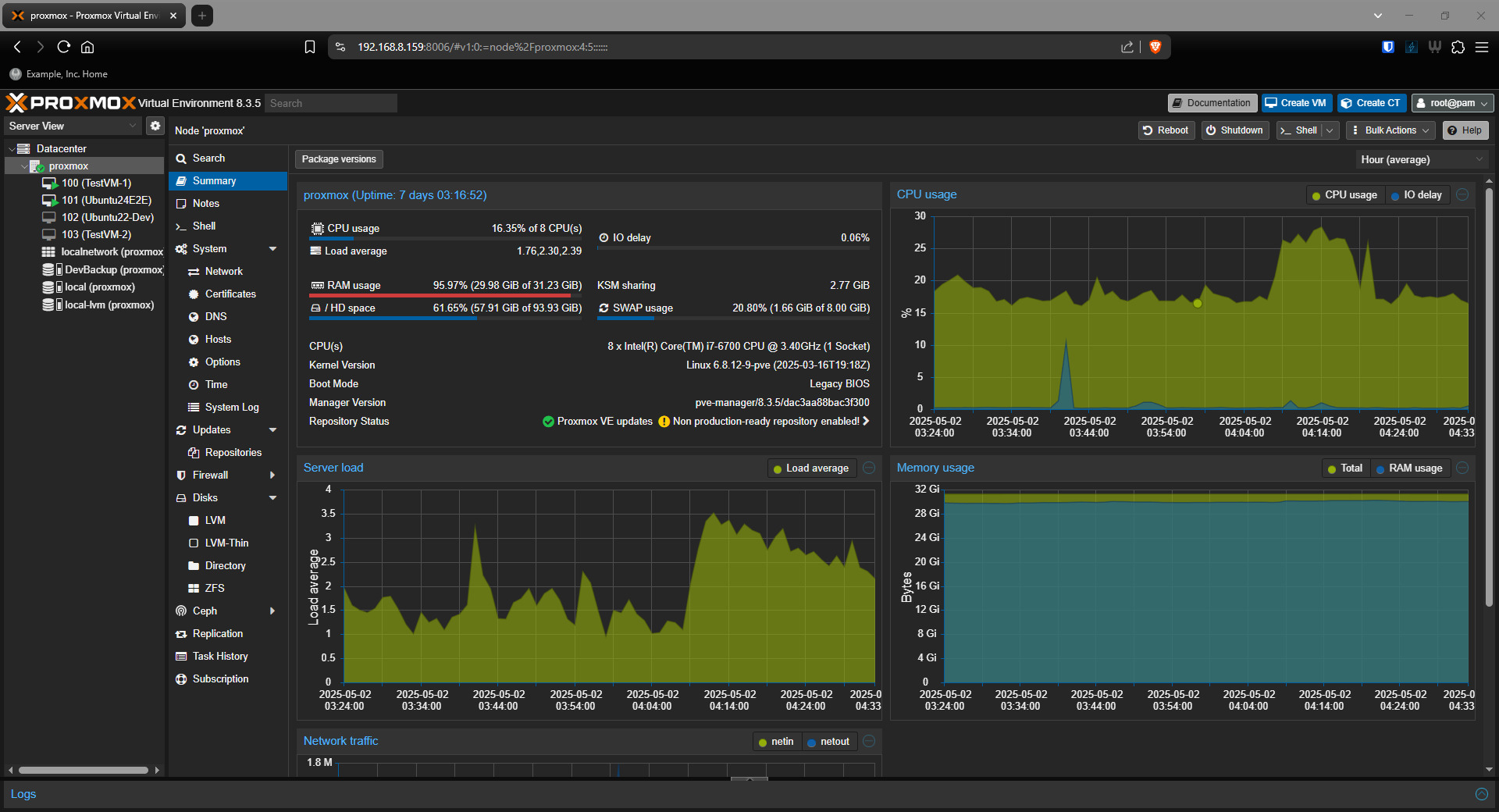 "Proxmox Virtual Environment (Proxmox VE or PVE) is a hyper-converged infrastructure open-source software. It is a hosted hypervisor that can run operating systems including Linux and Windows on x64 hardware. It is a Debian-based Linux distribution with a modified Ubuntu LTS kernel and allows deployment and management of virtual machines and containers. Proxmox VE includes a web console and command-line tools, and provides a REST API for third-party tools."